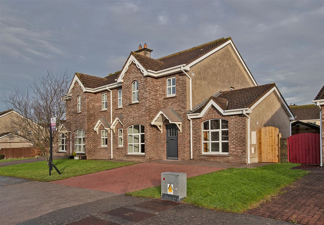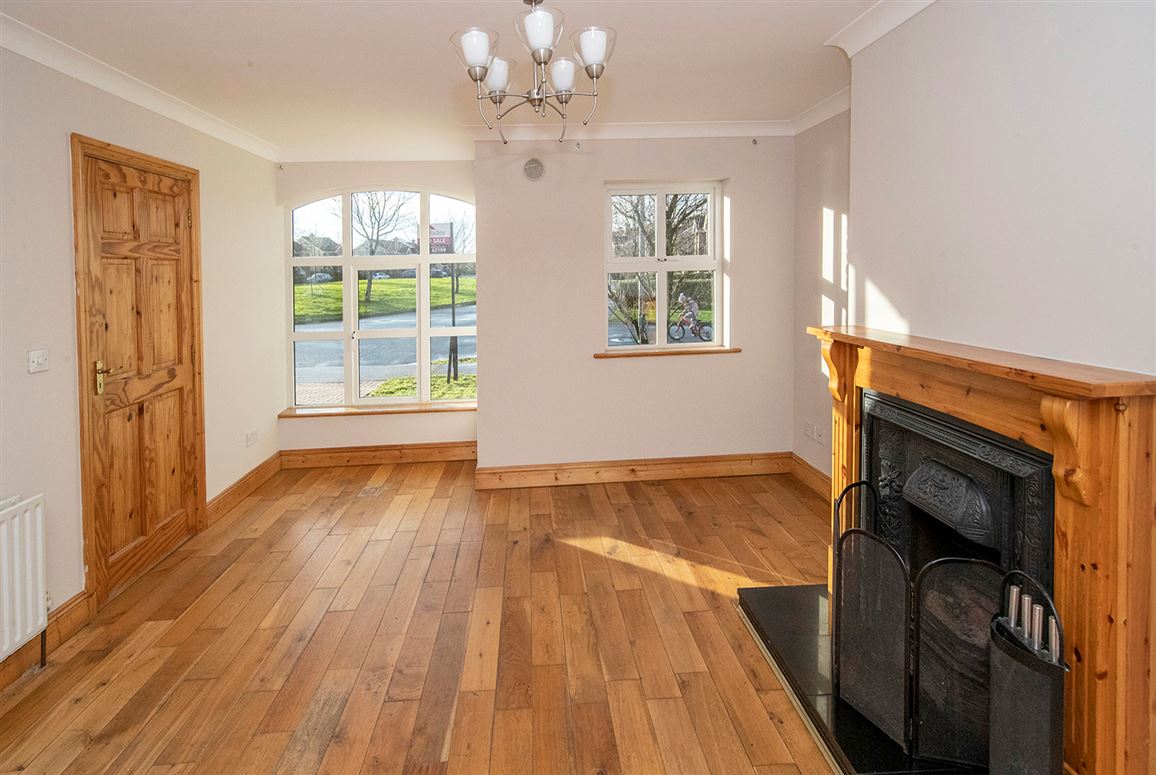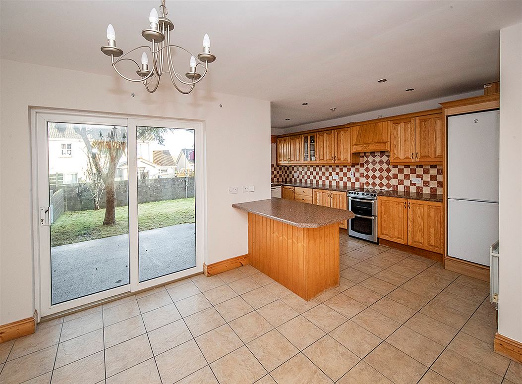 Constructed approximately 20 years ago, the home is located in a mature and well-established development renowned for its thoughtful design and strong sense of community. The accommodation is bright and well laid out, featuring a spacious living room with an open fireplace, creating a warm and welcoming atmosphere. Double doors lead through to a generous kitchen and dining area at the rear, an ideal space for modern family living and entertaining. Patio doors open onto a well-proportioned private rear garden.