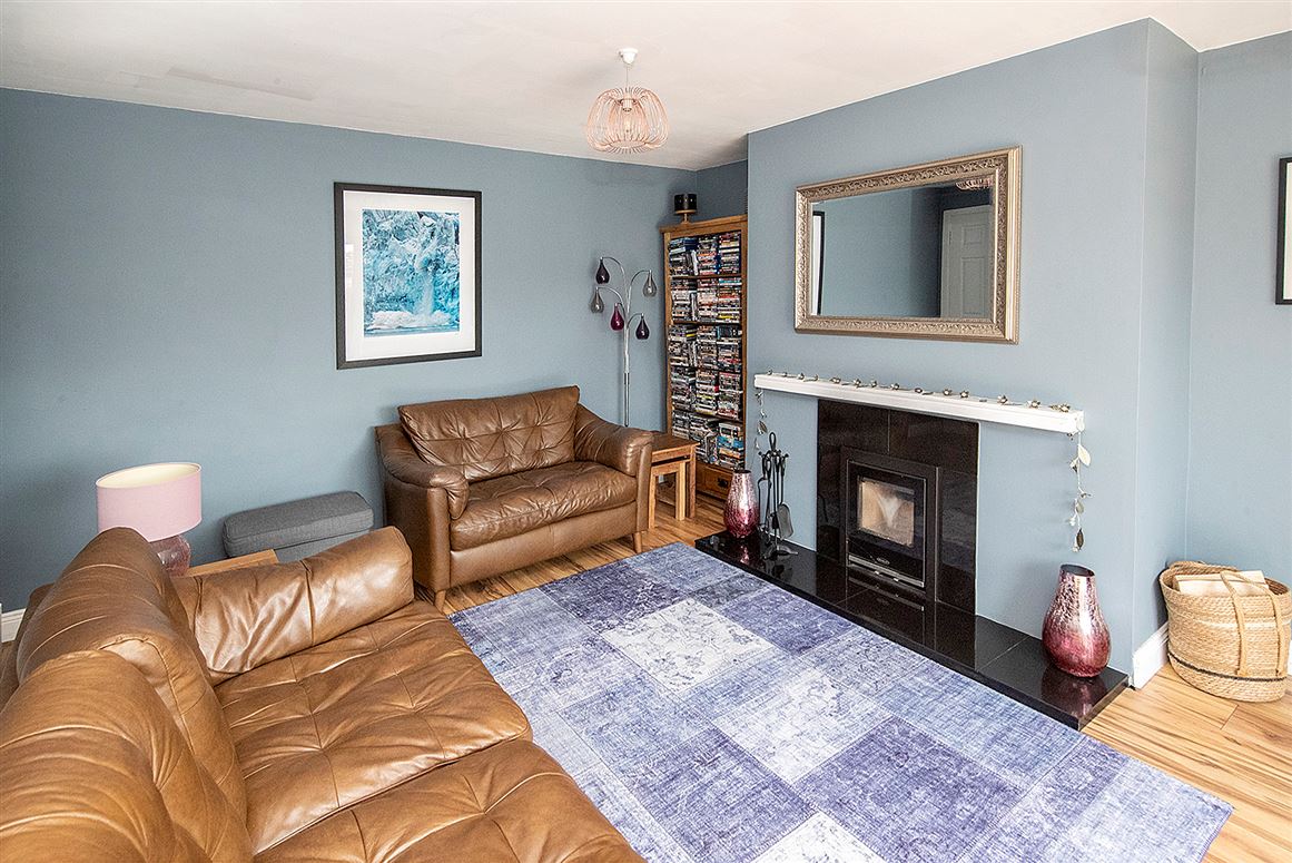 The living room has a new Stanley insert stove fitted and a large sliding door to the south facing mature garden.